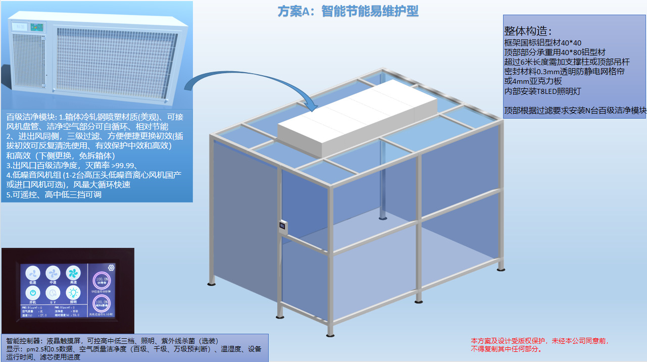 擴展性強:模塊化結(jié)構(gòu),可通過增加風機過濾單元(FFU)的數(shù)量等方式提高凈化級別,擴展性強,且重復(fù)利用價值高。